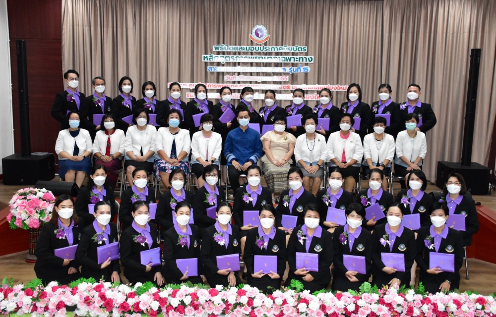 ศูนย์บริการพยาบาล คณะพยาบาลศาสตร์ มหาวิทยาลัยเชียงใหม่ จัดพิธีปิดและมอบประกาศนียบัตรการอบรมการพยาบาลเฉพาะทางสาขาการบริหารการพยาบาล รุ่นที่ 15 โดยมี ผู้ช่วยศาสตราจารย์ ดร.ธานี แก้วธรรมานุกูล คณบดีคณะพยาบาลศาสตร์ เป็นประธาน ผู้ช่วยศาสตราจารย์ ดร.บุญพิชชา จิตต์ภักดี ประธานคณะกรรมการหลักสูตรฯ กล่าวรายงาน และ รองศาสตราจารย์ฉวีวรรณ ธงชัย ผู้อำนวยการศูนย์บริการพยาบาล กล่าวแสดงความยินดี ณ ห้องประชุม ชั้น 5 อาคาร 4 คณะพยาบาลศาสตร์ เมื่อวันอังคารที่ 12 กรกฎาคม 2565