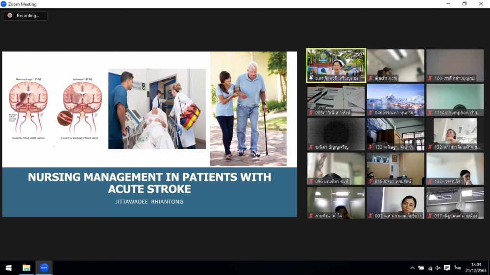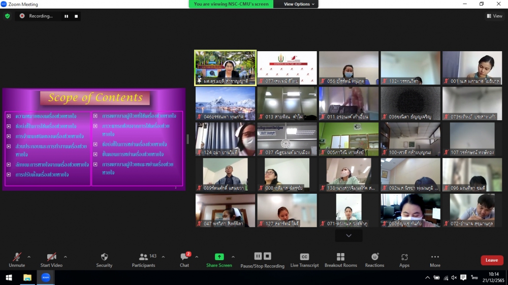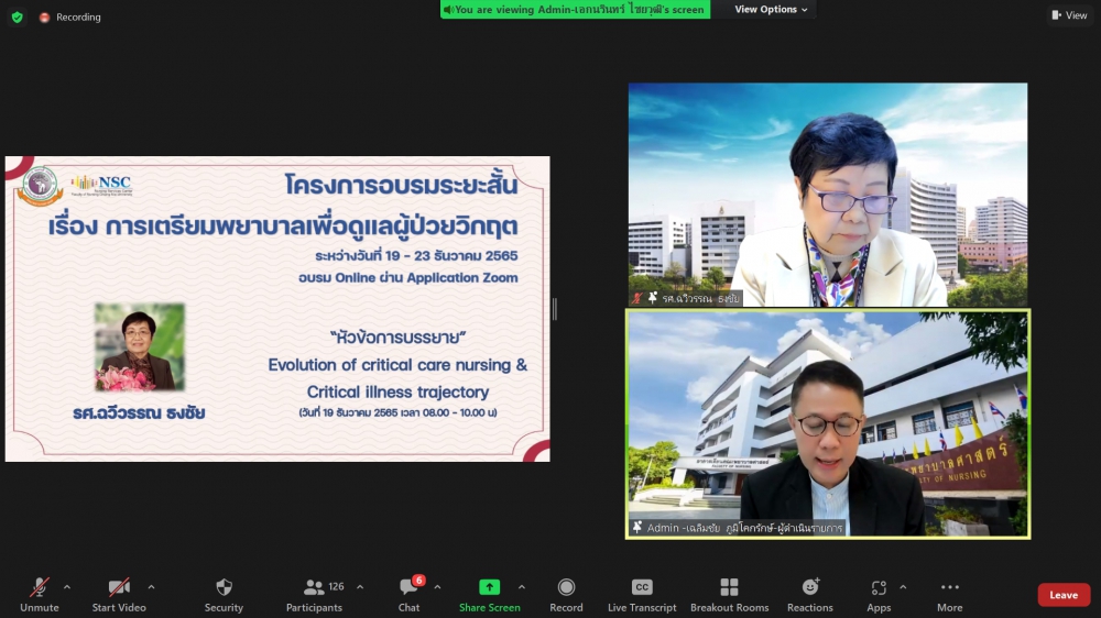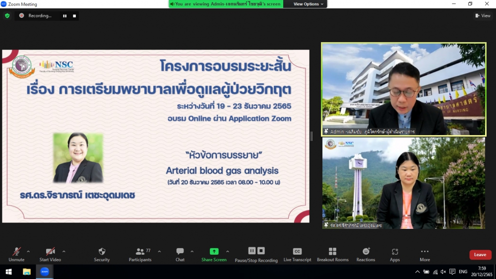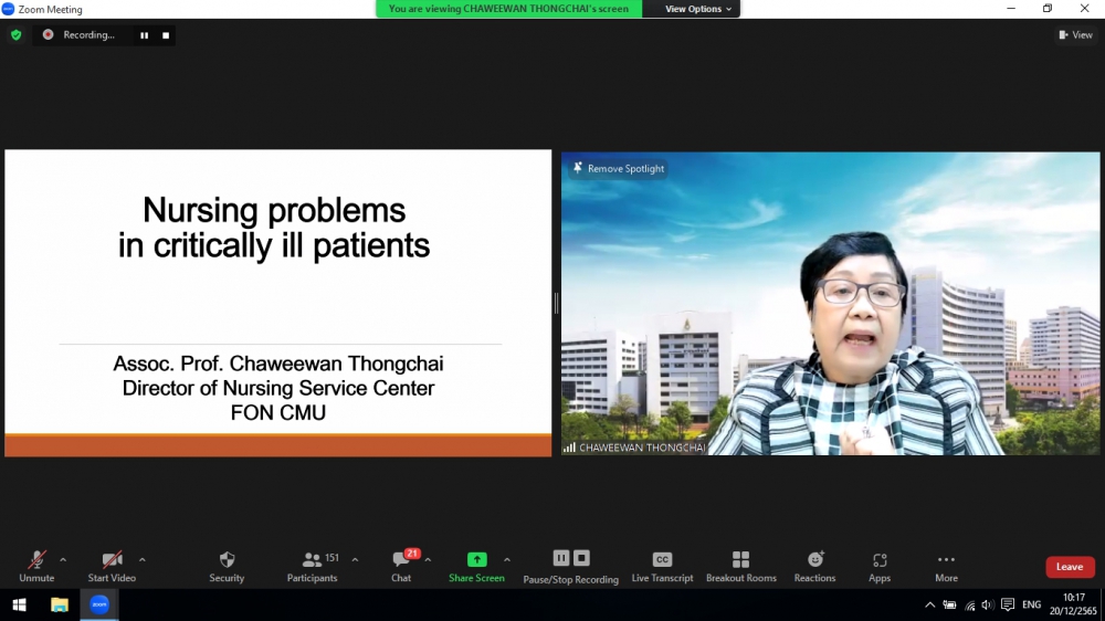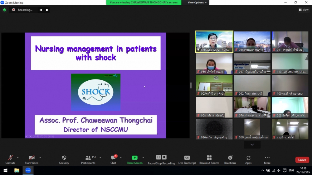 โครงการอบรมดังกล่าวจัดขึ้นระหว่างวันที่ 19-23 ธันวาคม 2565 ผ่าน zoom meeting มีพยาบาลวิชาชีพเข้าร่วมอบรม 139 คน