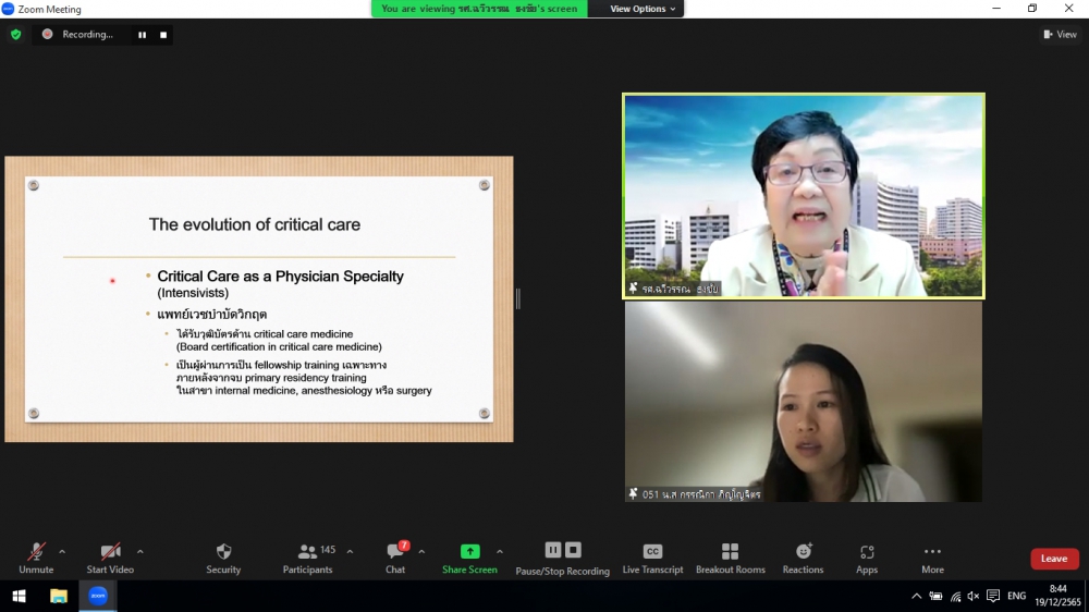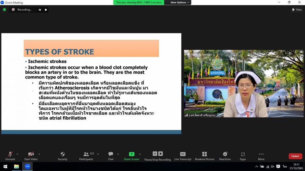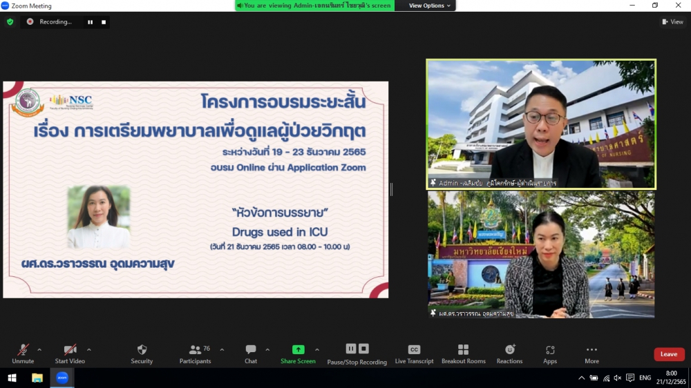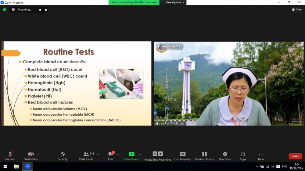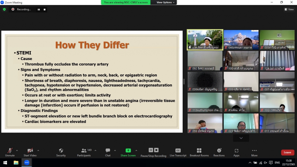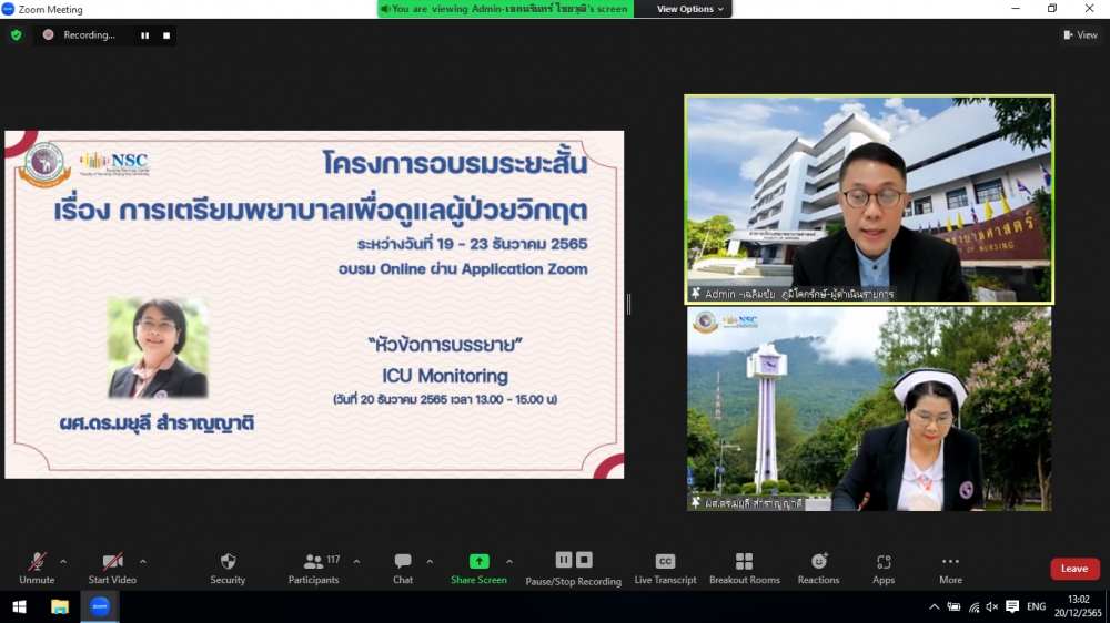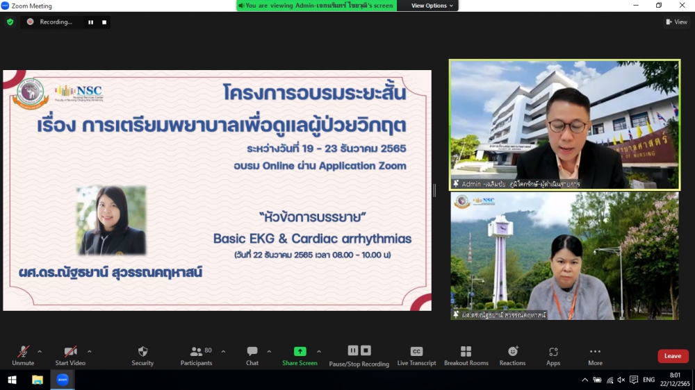 โครงการอบรมดังกล่าวจัดขึ้นระหว่างวันที่ 19-23 ธันวาคม 2565 ผ่าน zoom meeting มีพยาบาลวิชาชีพเข้าร่วมอบรม 139 คน