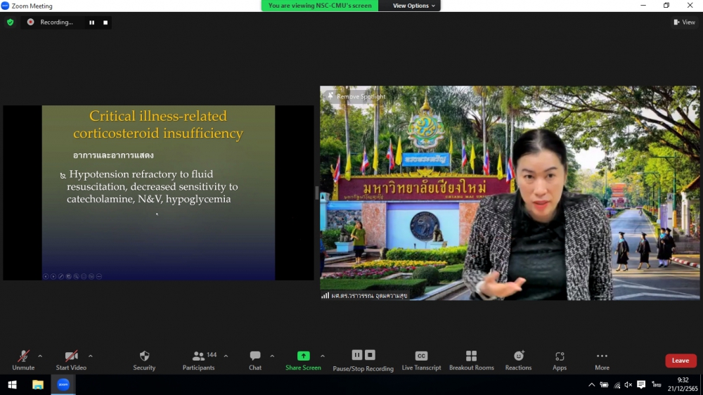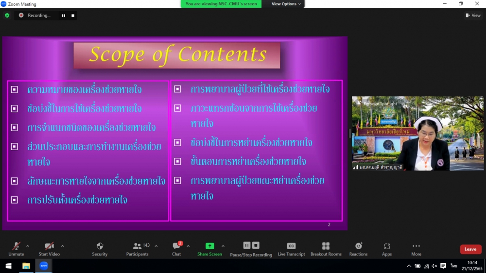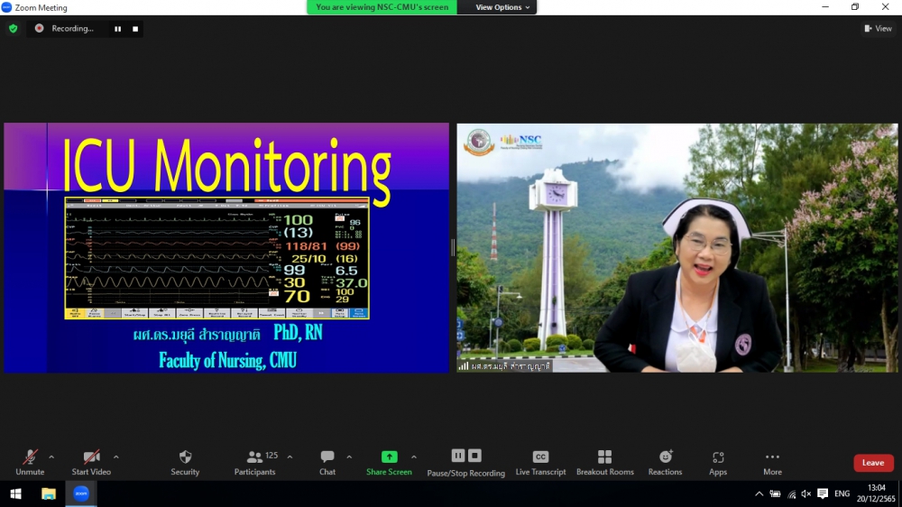 วันจันทร์ที่ 19 ธันวาคม 2565 ศูนย์บริการพยาบาล คณะพยาบาลศาสตร์ มหาวิทยาลัยเชียงใหม่ จัดพิธีเปิดโครงการอบรมระยะสั้น เรื่อง การเตรียมพยาบาลสำหรับการดูแลผู้ป่วยวิกฤต ขึ้นโดยมี ผู้ช่วยศาสตราจารย์ ดร.ธานี แก้วธรรมานุกูล คณบดีคณะพยาบาลศาสตร์เป็นประธาน และ รองศาสตราจารย์ฉวีวรรณ ธงชัย ผู้อำนวยการศูนย์บริการพยาบาลและประธานโครงการฯ กล่าวรายงานและกล่าวต้อนรับ โดยมีวัตถุประสงค์เพื่อเพิ่มพูนความรู้และความเข้าใจแก่พยาบาลในการประเมินผู้ป่วยเพื่อค้นหาปัญหาวิกฤตและความเสี่ยงที่จะเกิดขึ้น ตลอดจนมีความรู้เกี่ยวกับการใช้เทคโนโลยีเพื่อการเฝ้าระวังอาการเปลี่ยนแปลงและการใช้อุปกรณ์การแพทย์ในการดูแลผู้ป่วยวิกฤตเพื่อให้ผู้ป่วยปลอดภัย ไม่เกิดภาวะแทรกซ้อนหรือเหตุการณ์ไม่พึงประสงค์ และสามารถลดอัตราการตายลงได้