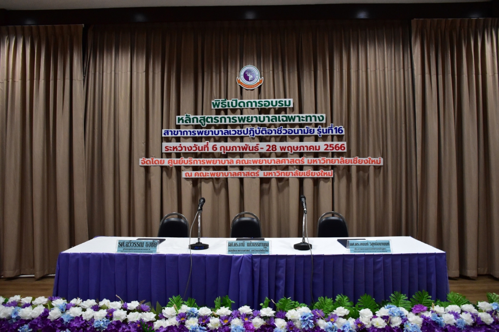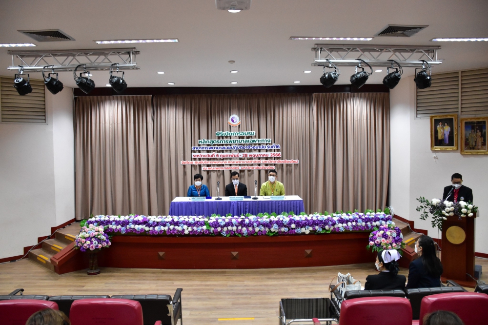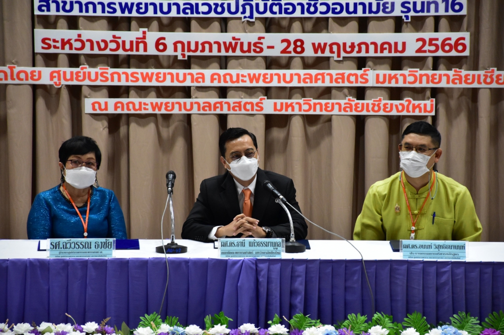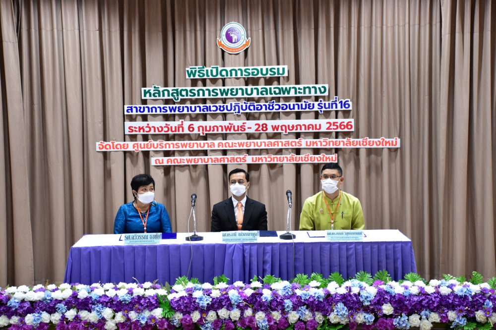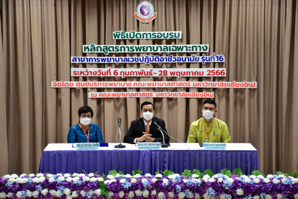 ศูนย์บริการพยาบาล คณะพยาบาลศาสตร์ มหาวิทยาลัยเชียงใหม่ จัดพิธีเปิดการอบรมหลักสูตรการพยาบาลเฉพาะทางสาขาการพยาบาลเวชปฎิบัติอาชีวอนามัย รุ่นที่ 16 โดยมี ผู้ช่วยศาสตราจารย์ ดร.ธานี แก้วธรรมานุกูล คณบดีคณะพยาบาลศาสตร์ เป็นประธาน ผู้ช่วยศาสตราจารย์ ดร.อนนท์ วิสุทธิ์ธนานนท์ ประธานกรรมการหลักสูตรฯ กล่าวรายงาน และ รองศาสตราจารย์ ฉวีวรรณ ธงชัย ผู้อำนวยการศูนย์บริการพยาบาล กล่าวต้อนรับ การอบรมดังกล่าวจัดขึ้นระหว่างวันที่ 6 กุมภาพันธ์ - 28 พฤษภาคม 2566 มีผู้เข้าร่วมการอบรมทั้งสิ้น 31 คน