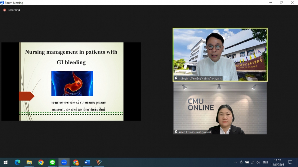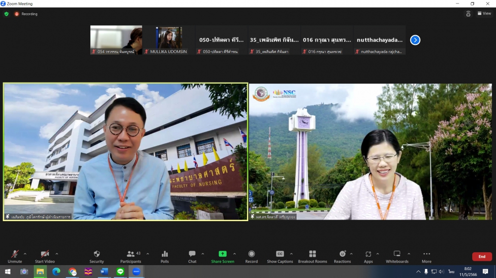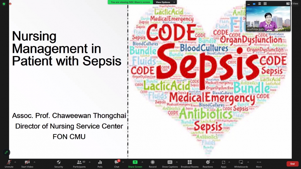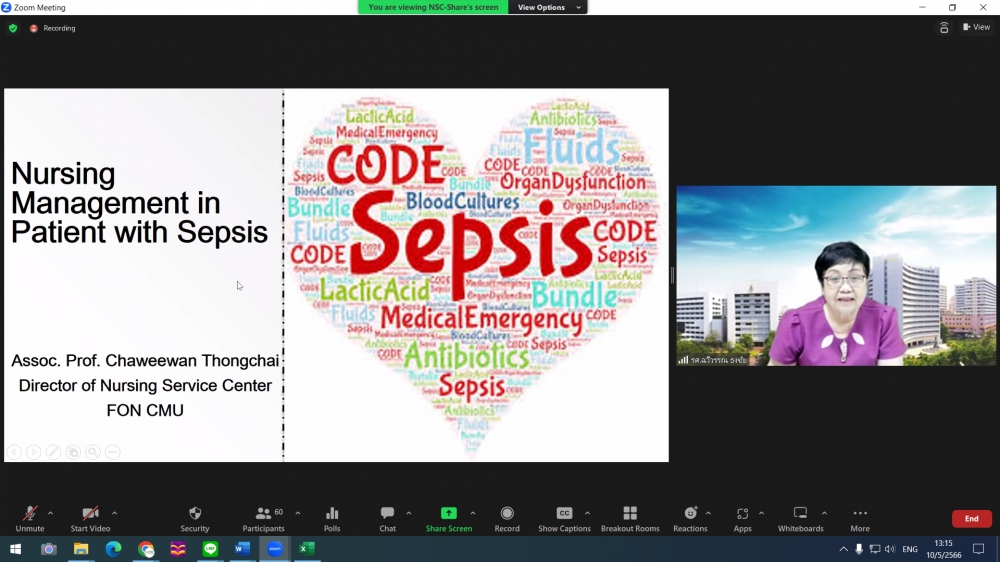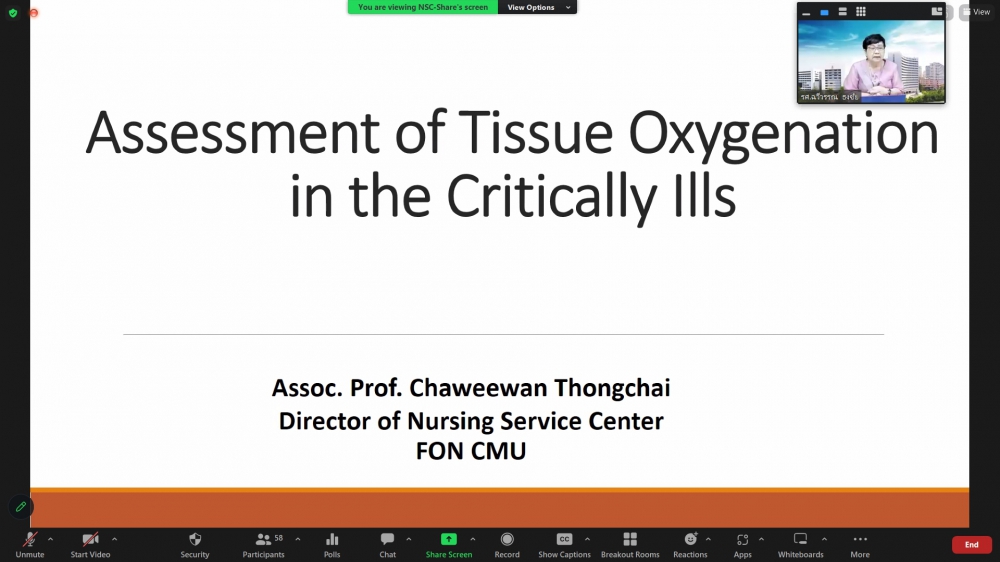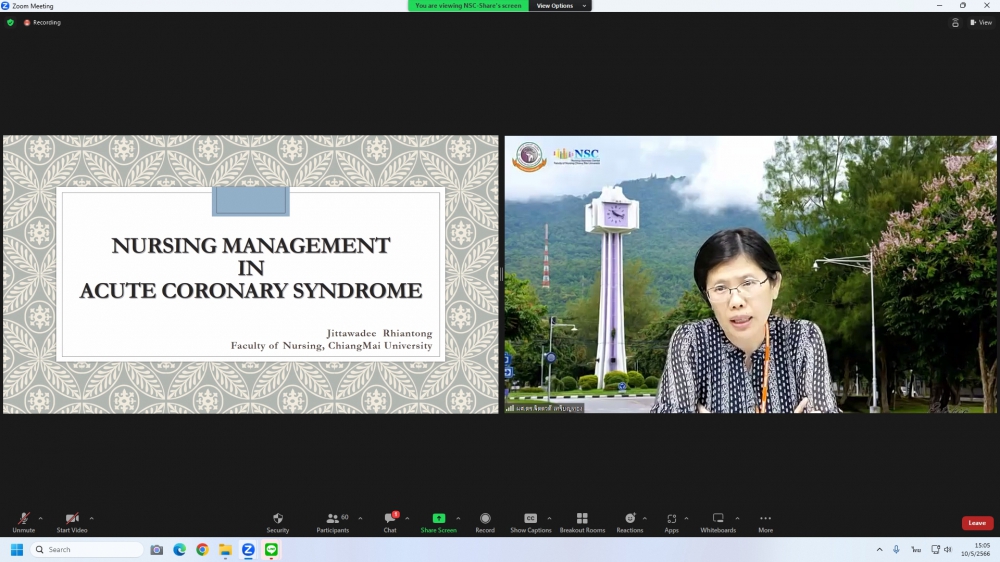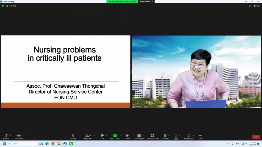 ศูนย์บริการพยาบาล คณะพยาบาลศาสตร์ มหาวิทยาลัยเชียงใหม่ จัดการอบรมระยะสั้น เรื่องการเตรียมพยาบาลเพื่อดูแลผู้ป่วยวิกฤต (Online) ขึ้น ระหว่างวันที่ 8-12 พฤษภาคม 2566 ผ่าน zoom meeting โดยพิธีเปิดได้รับเกียรติจาก ผศ.ดร.ธานี แก้วธรรมานุกูล คณบดีคณะพยาบาลศาสตร์ มหาวิทยาลัยเชียงใหม่ เป็นประธานในพิธี และ รศ.ฉวีวรรณ ธงชัย ผู้อำนวยการศูนย์บริการพยาบาลและประธานโครงการกล่าวรายงานและกล่าวต้อนรับ