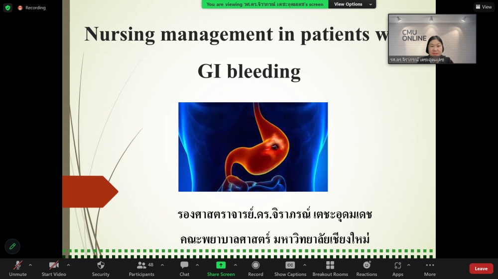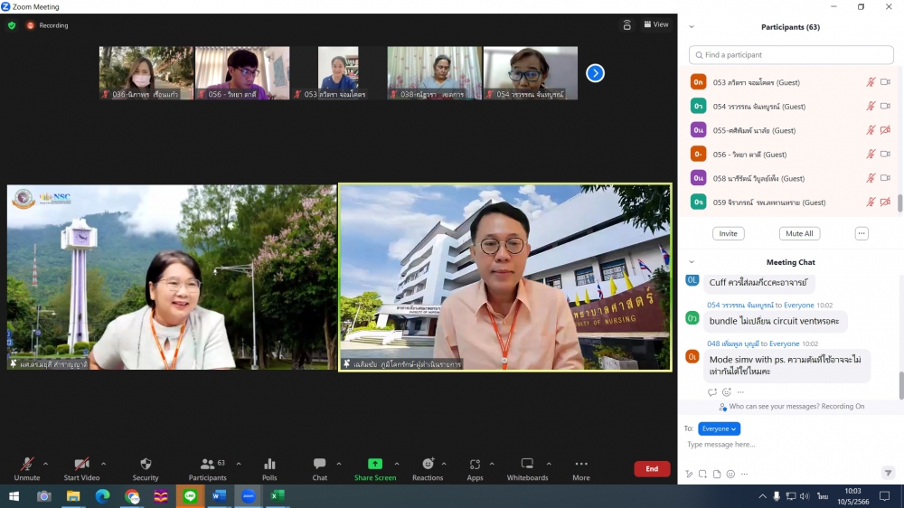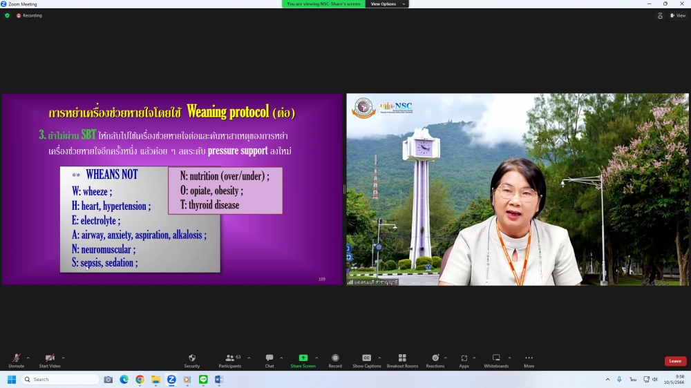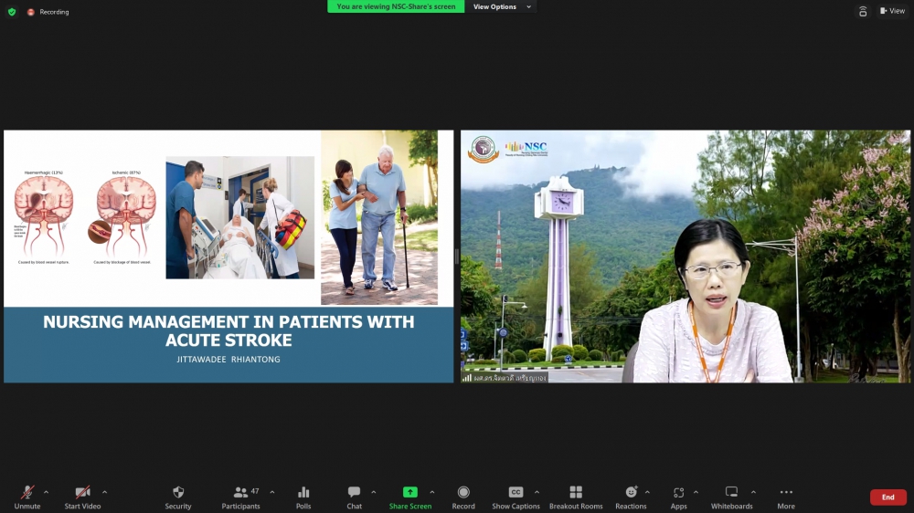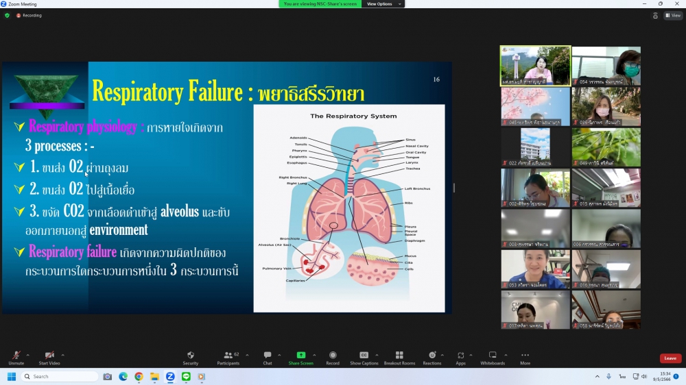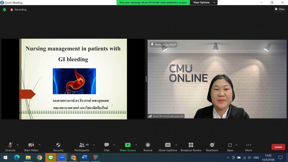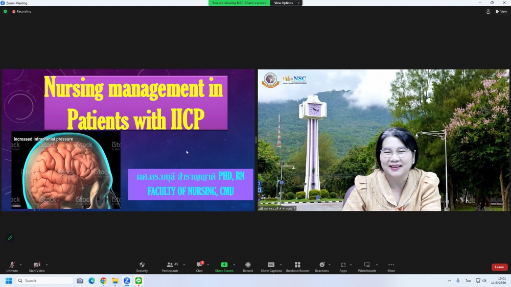ศูนย์บริการพยาบาล คณะพยาบาลศาสตร์ มหาวิทยาลัยเชียงใหม่ จัดการอบรมระยะสั้น เรื่องการเตรียมพยาบาลเพื่อดูแลผู้ป่วยวิกฤต (Online) ขึ้น ระหว่างวันที่ 8-12 พฤษภาคม 2566 ผ่าน zoom meeting โดยพิธีเปิดได้รับเกียรติจาก ผศ.ดร.ธานี แก้วธรรมานุกูล คณบดีคณะพยาบาลศาสตร์ มหาวิทยาลัยเชียงใหม่ เป็นประธานในพิธี และ รศ.ฉวีวรรณ ธงชัย ผู้อำนวยการศูนย์บริการพยาบาลและประธานโครงการกล่าวรายงานและกล่าวต้อนรับ