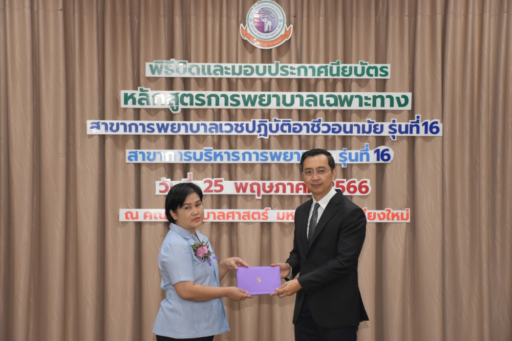ผู้ช่วยศาสตราจารย์ ดร.ธานี แก้วธรรมานุกูล คณบดีคณะพยาบาลศาสตร์ มหาวิทยาลัยเชียงใหม่ เป็นประธานในพิธีปิดและมอบมอบประกาศนียบัตรหลักสูตรการพยาบาลเฉพาะทางสาขาการพยาบาลเวชปฏิบัติอาชีวอนามัย รุ่นที่ 16 และ สาขาการบริหารการพยาบาล รุ่นที่ 16 โดยมี ผู้ช่วยศาสตราจารย์ ดร.อนนท์ วิสุทธิ์ธนานนท์ ประธานกรรมการบริหารหลักสูตรการพยาบาลเฉพาะทางสาขาการพยาบาลเวชปฏิบัติอาชีวอนามัย ผู้ช่วยศาสตราจารย์ ดร.บุญพิชชา จิตต์ภักดี ประธานกรรมการบริหารหลักสูตรการพยาบาลเฉพาะทางสาขาการบริหารการพยาบาล กล่าวรายงาน และ รองศาสตราจารย์ฉวีวรรณ ธงชัย ผู้อำนวยการศูนย์บริการพยาบาล กล่าวแสดงความยินดี ณ ห้องประชุมชั้น 5 อาคาร 4 คณะพยาบาลศาสตร์ เมื่อวันพฤหัสบดีที่ 25 พฤษภาคม 2566