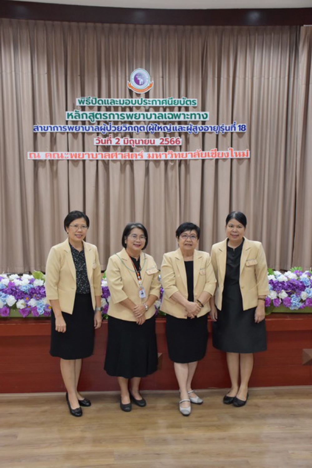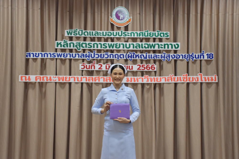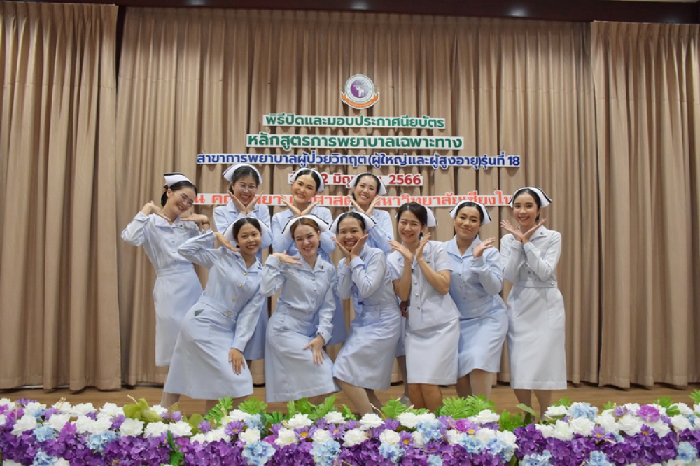 วันศุกร์ที่ 2 มิถุนายน 2566 ศูนย์บริการพยาบาล คณะพยาบาลศาสตร์ มหาวิทยาลัยเชียงใหม่ จัดพิธีปิดและมอบประกาศนียบัตรการอบรมการพยาบาลเฉพาะทางสาขาการพยาบาลผู้ป่วยวิกฤต (ผู้ใหญ่และผู้สูงอายุ) รุ่นที่ 18 โดยมี ผู้ช่วยศาสตราจารย์ ดร.ธานี แก้วธรรมานุกูล คณบดีคณะพยาบาลศาสตร์ เป็นประธานในพิธี และ รองศาสตราจารย์ฉวีวรรณ ธงชัย ผู้อำนวยการศูนย์บริการพยาบามอบประกาศนียบัตรอบรมหลักสูตรการพยาบาลเฉพาะทางสาขาการพยาบาลผู้ป่วยวิกฤต (ผู้ใหญ่และผู้สูงอายุ) รุ่นที่ 18ลและประธานคณะกรรมการสาขาฯ กล่าวรายงานและกล่าวแสดงความยินดี ณ ห้องประชุม ชั้น 5 อาคาร 4 คณะพยาบาลศาสตร์