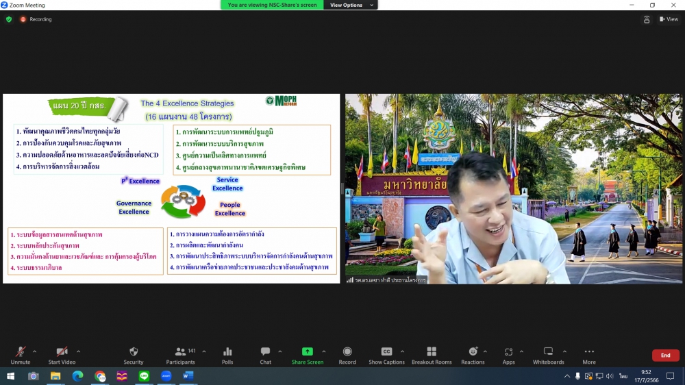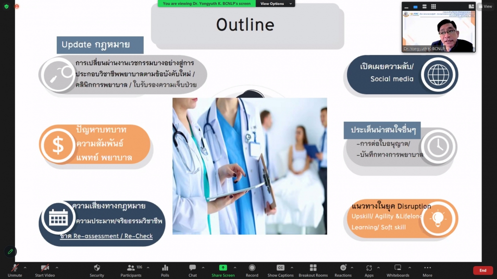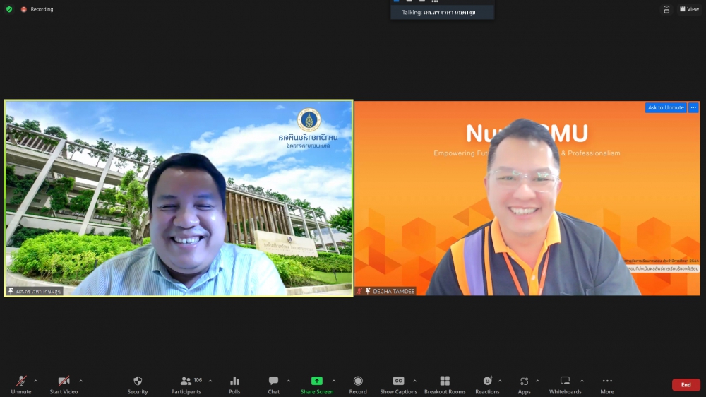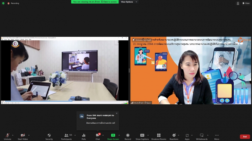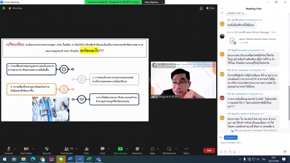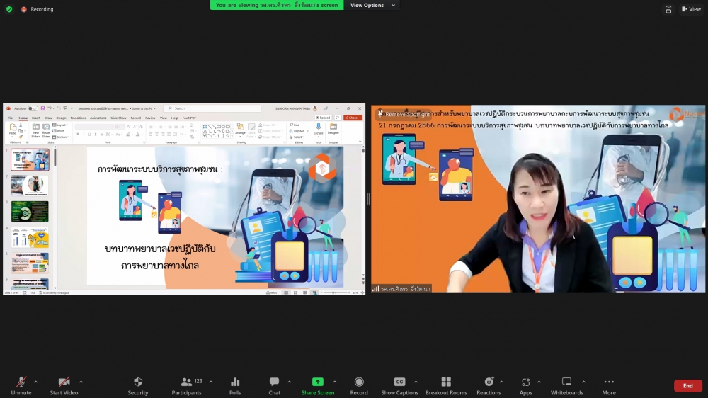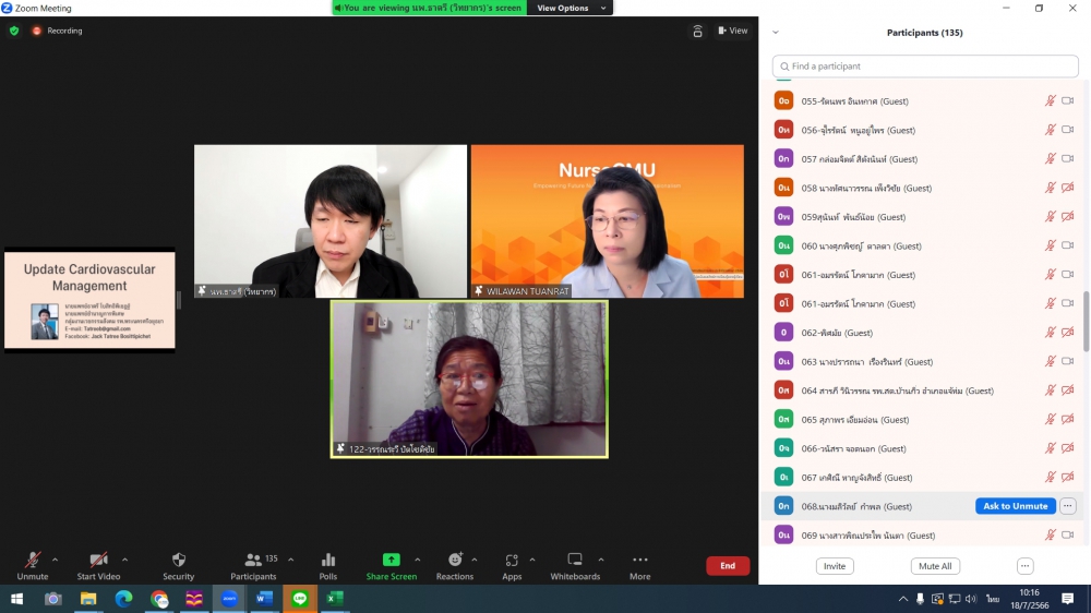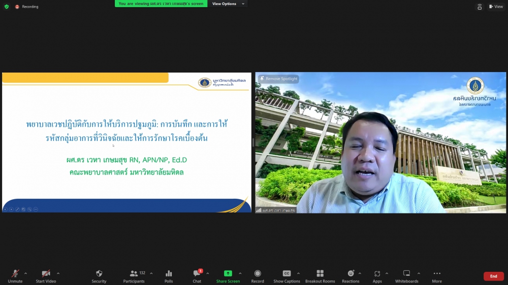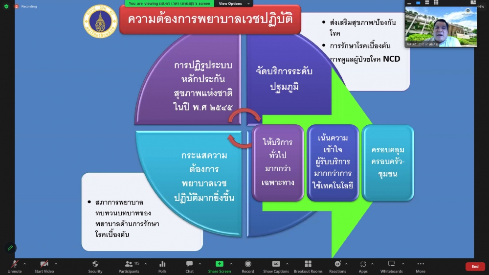 ศูนย์บริการพยาบาล คณะพยาบาลศาสตร์ มหาวิทยาลัยเชียงใหม่ จัดพิธีเปิดการอบรมฟื้นฟูวิชาการ สำหรับพยาบาลเวชปฏิบัติ เรื่อง พยาบาลเวชปฏิบัติ: กระบวนการพยาบาลสู่การพัฒนาระบบบริการสุขภาพชุมชน โดยมี ผู้ช่วยศาสตราจารย์ ดร.ธานี แก้วธรรมานุกูล คณบดีคณะพยาบาลศาสตร์ เป็นประธานกล่าวเปิด รองศาสตราจารย์ ดร.เดชา ทำดี ประธานโครงการฯ กล่าวรายงาน และ รองศาสตราจารย์ฉวีรวรรณ ธงชัย ผู้อำนวยการศูนย์บริการพยาบาล กล่าวต้อนรับ การอบรมจัดระหว่างวันที่ 17-21 กรกฎาคม 2566 ผ่านระบบ Zoom Meeting