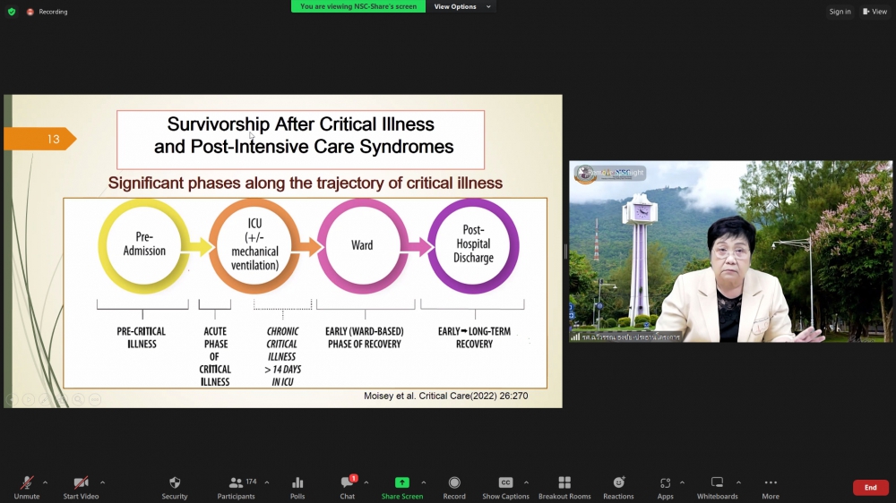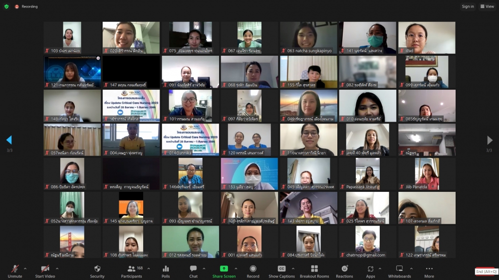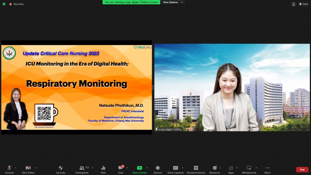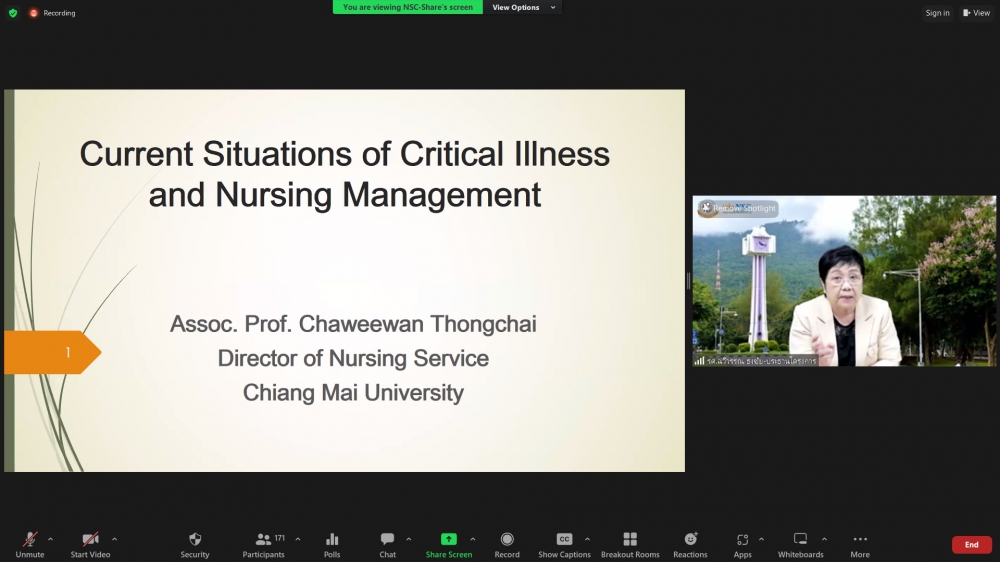 โครงการอบรมระยะสั้น เรื่อง Update Critical Care Nursing 2023วันจันทร์ที่ 28 สิงหาคม 2566 ศูนย์บริการพยาบาล คณะพยาบาลศาสตร์ มหาวิทยาลัยเชียงใหม่ จัดพิธีเปิดกการอบรมระยะสั้น เรื่อง Update Critical Care Nursing 2023 (Online) ขึ้น ได้รับเกียรติจาก ผู้ช่วยศาสตราจารย์ ดร.ธานี แก้วธรรมานุกูล คณบดีคณะพยาบาลศาสตร์ มหาวิทยาลัยเชียงใหม่ และ รองศาสตราจารย์ฉวีวรรณ ธงชัย ผู้อำนวยการศูนย์บริการพยาบาลและประธานโครงการ กล่าวรายงานและกล่าวต้อนรับผู้เข้าร่วมการอบรมการอบรมดังกล่าวจัดขึ้นระหว่างวันที่ 28 สิงหาคม – 1 กันยายน 2566 ผ่านระบบ Zoom Meeting โดยคัดสรรหัวข้อเรื่องที่มีสาระสำคัญที่เป็นความรู้ใหม่ อันได้แก่ การจัดระบบการพยาบาลให้เหมาะสมกับสถานการณ์การเจ็บป่วยวิกฤตร่วมกับสหสาขาวิชาชีพ กลยุทธ์การป้องกันและการควบคุมการติดเชื้อในหอผู้ป่วยวิกฤต การเฝ้าระวังอาการเปลี่ยนแปลงอย่างต่อเนื่องด้วยเทคโนโลยีใหม่ การพัฒนาบทบาทสมรรถนะผู้ปฏิบัติการพยาบาลขั้นสูงในหอผู้ป่วยวิกฤต เพื่อให้เกิดผลลัพธ์ของการดูแลที่เป็นเลิศ และแนวทางการดูแลแบบประคับประคองในผู้ป่วยวิกฤตที่ไม่ตอบสนองต่อการรักษาแล้ว ทั้งนี้ เพื่อให้ผู้เข้าอบรมสามารถนำไปปฏิบัติให้สอดคล้องกับสถานการณ์การเจ็บป่วยวิกฤต และเกิดประโยชน์แก่ผู้รับบริการ แก่หน่วยงาน อีกทั้งยังเป็นการพัฒนาความก้าวหน้าในวิชาชีพของตนเองได้อีกด้วย