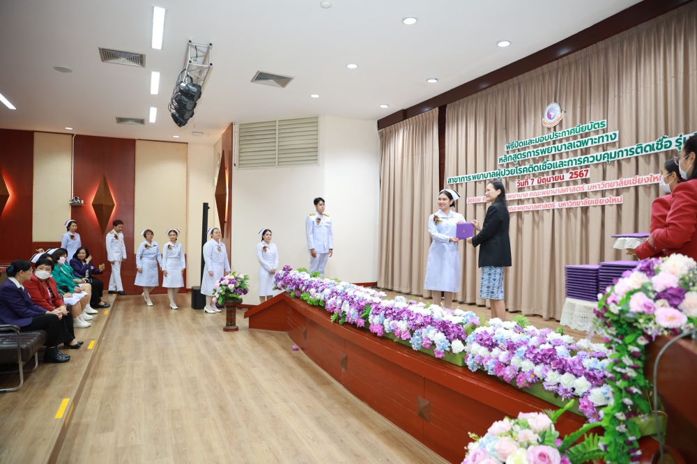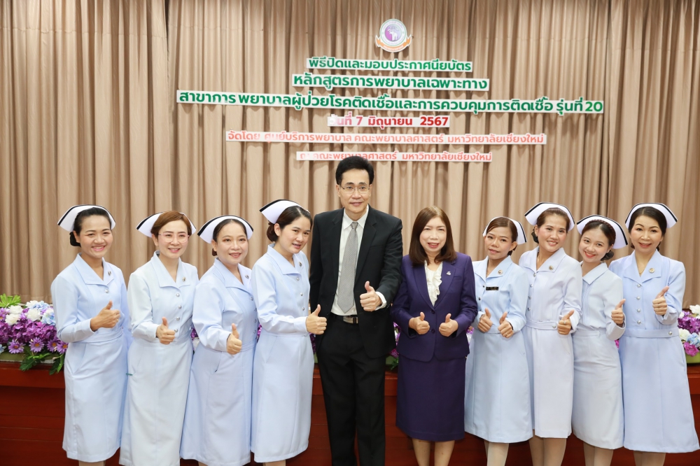 วันศุกร์ที่ 7 มิถุนายน 2567 อาจารย์ ดร. นงลักษณ์ เฉลิมสุข รองคณบดีด้านขับเคลื่อนยุทธศาสตร์ สื่อสารและภาพลักษณ์องค์กร คณะพยาบาลศาสตร์ มหาวิทยาลัยเชียงใหม่ เป็นประธานในพิธีปิดและมอบประกาศนียบัตรหลักสูตรการพยาบาลเฉพาะทางสาขาการพยาบาลผู้ป่วยโรคติดเชื้อและการควบคุมการติดเชื้อ รุ่นที่ 20 โดยมี รองศาสตราจารย์ ดร.วันชัย เลิศวัฒนวิลาศ ประธานกรรมการบริหารหลักสูตรฯ กล่าวรายงาน และ รองศาสตราจารย์ฉวีวรรณ ธงชัย ผู้อำนวยการศูนย์บริการพยาบาล กล่าวแสดงความยินดี ในโอกาสนี้ได้รับเกียรติจาก คณาจารย์คณะพยาบาลศาสตร์ ตลอดจนพี่เลี้ยงแหล่งฝึกจากโรงพยาบาลมหาราชนครเชียงใหม่ และโรงพยาบาลนครพิงค์ ร่วมแสดงความยินดี ณ ห้องประชุมชั้น 5 อาคาร 4 คณะพยาบาลศาสตร์