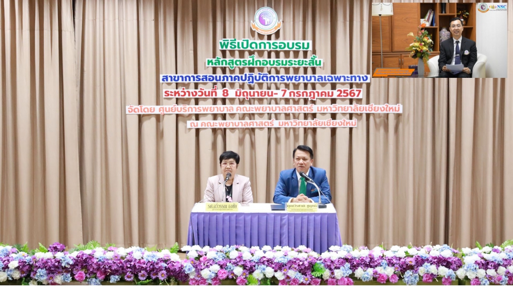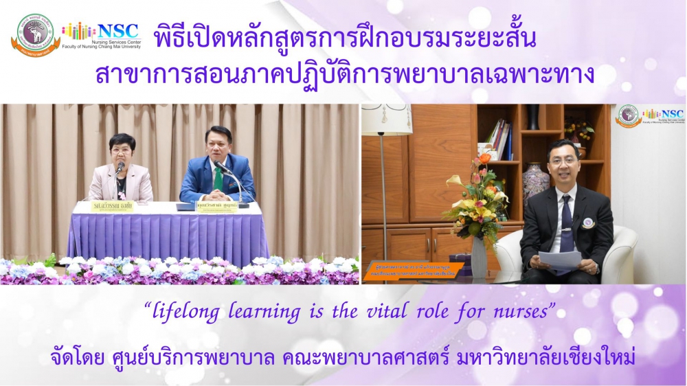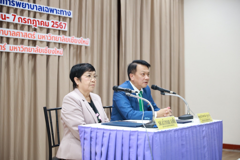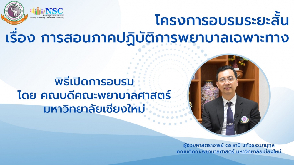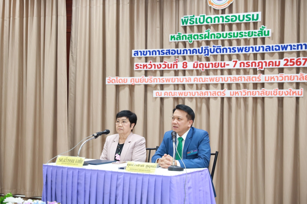 8 มิถุนายน 2567 ศูนย์บริการพยาบาล คณะพยาบาลศาสตร์ มหาวิทยาลัยเชียงใหม่ จัดพิธีเปิดหลักสูตรการฝึกอบรมระยะสั้นสาขาการสอนภาคปฏิบัติการพยาบาลเฉพาะทาง โดยมี ผู้ช่วยศาสตราจารย์ ดร.ธานี แก้วธรรมานุกูล คณบดีคณะพยาบาลศาสตร์ เป็นประธานกล่าวเปิดงาน รองศาสตราจารย์ฉวีวรรณ ธงชัย ผู้อำนวยการศูนย์บริการพยาบาลและประธานโครงการฯ กล่าวรายงาน และคุณวีระชาติ ชูฤทธิ์ หัวหน้าฝ่ายการพยาบาล โรงพยาบาลมหาราชนครเชียงใหม่กล่าวต้อนรับ ในโอกาสนี้ได้รับเกียรติจากคณาจารย์คณะพยาบาลศาสตร์ มหาวิทยาลัยเชียงใหม่ และตัวแทนฝ่ายการพยาบาลโรงพยาบาลมหาราชนครเชียงใหม่เข้าร่วมในพิธีเปิด ณ ห้องประชุมชั้น 5 อาคาร 4 คณะพยาบาลศาสตร์