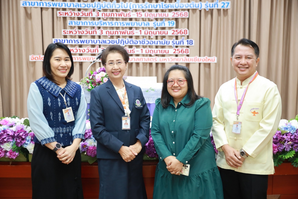 ศูนย์บริการพยาบาล คณะพยาบาลศาสตร์ มช. จัดพิธีเปิดการอบรมหลักสูตรการพยาบาลเฉพาะทาง 3 สาขาในวันที่ 3 กุมภาพันธ์ 2568 ศูนย์บริการพยาบาล คณะพยาบาลศาสตร์ มหาวิทยาลัยเชียงใหม่ ได้จัดพิธีเปิดการอบรมหลักสูตรการพยาบาลเฉพาะทาง 3 สาขา ได้แก่ สาขาการพยาบาลเวชปฏิบัติทั่วไป (การรักษาโรคเบื้องต้น) รุ่นที่ 27, สาขาการบริหารการพยาบาล รุ่นที่ 19 และสาขาการพยาบาลเวชปฏิบัติอาชีวอนามัย รุ่นที่ 18 โดยมีผู้ช่วยศาสตราจารย์ ดร.สุภารัตน์ วังศรีคูณ คณบดีคณะพยาบาลศาสตร์ เป็นประธานในพิธี รองศาสตราจารย์ ดร.ศิวพร อึ้งวัฒนา ประธานคณะกรรมการสาขาการพยาบาลเวชปฏิบัติทั่วไป (การรักษาโรคเบื้องต้น), ผู้ช่วยศาสตราจารย์ ดร.บุญพิชชา จิตต์ภักดี ประธานคณะกรรมการสาขาการบริหารการพยาบาล, และผู้ช่วยศาสตราจารย์ ดร.อนนท์ วิสุทธิ์ธนานนท์ ประธานคณะกรรมการสาขาการพยาบาลเวชปฏิบัติอาชีวอนามัย กล่าวรายงานตามลำดับ และศาสตราจารย์ คลินิก ดร.พรรณพิไล ศรีอาภรณ์ ผู้อำนวยการศูนย์บริการพยาบาล กล่าวต้อนรับ ซึ่งจัดขึ้น ณ ห้องประชุมชั้น 5 อาคาร 4 คณะพยาบาลศาสตร์ มีผู้เข้าร่วมอบรมจำนวน 110 คน