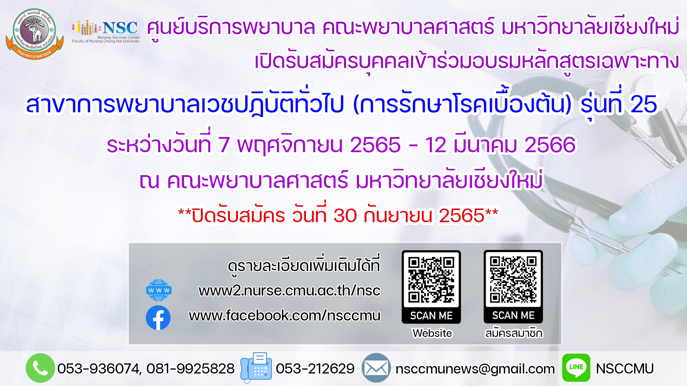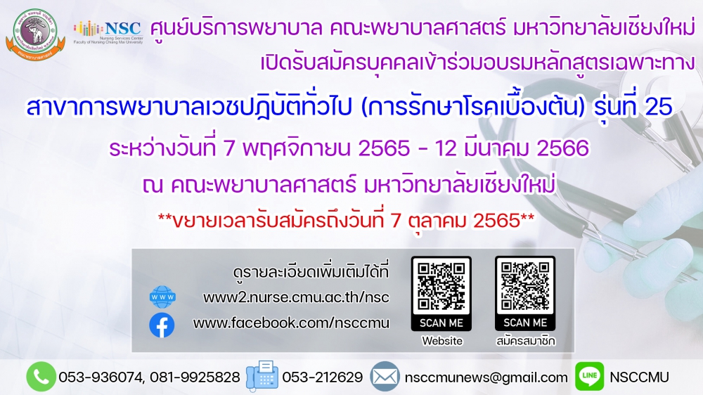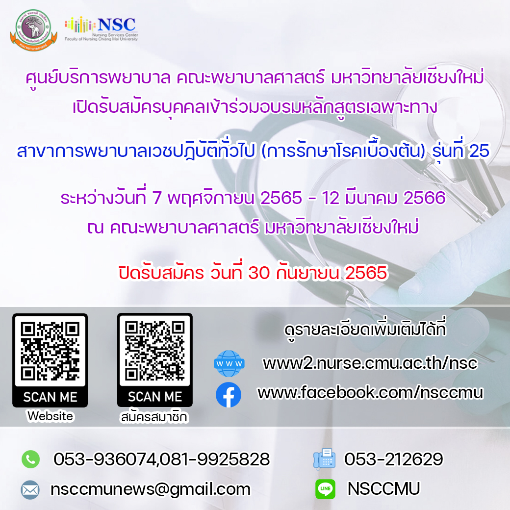 - ทาง Line ID : NSCCMUลงทะเบียน/เบอร์ 081-9925828