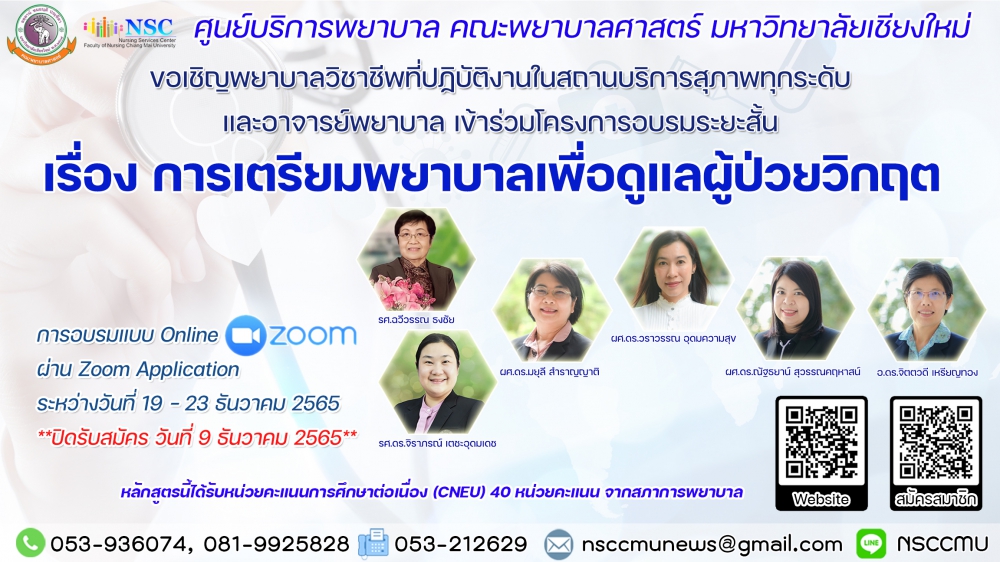 สอบถามรายละเอียดเพิ่มเติม โทรศัพท์ : 053-936074, 053-949151, 081-9925828 โทรสาร : 053-212629 Email : nsccmunews@gmail.com Facebook : www.facebook.com/nsccmu