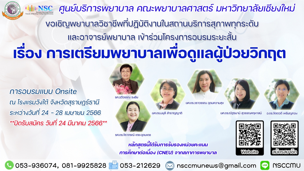 สอบถามรายละเอียดเพิ่มเติม โทรศัพท์ : 053-936074, 053-949151, 081-9925828 โทรสาร : 053-212629 Email : nsccmunews@gmail.com Facebook : www.facebook.com/nsccmu