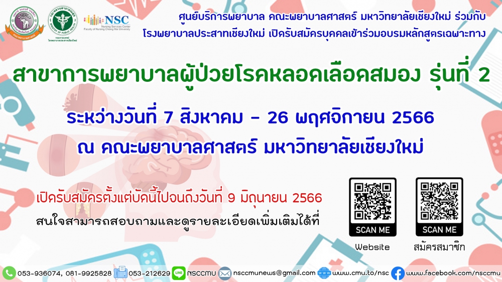 ระหว่างวันที่ 7 สิงหาคม - 26 พฤศจิกายน 2566 ณ คณะพยาบาลศาสตร์ มหาวิทยาลัยเชียงใหม่