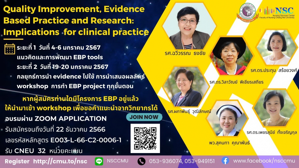 "ความรู้จากการอบรมครั้งนี้ จะช่วยให้ท่านสามารถสร้างโครงการพัฒนาคุณภาพจากการใช้หลักฐานเชิงประจักษ์ สู่การพัฒนาเป็นงานวิจัยในคลินิก ซึ่งท่านสามารถพัฒนางานเพื่อเข้าสู่การกำหนดตำแหน่งและพัฒนาสมรรถะการปฏิบัติการพยาบาลขั้นสูง ตลอดจนการพัฒนา advanced faculty practice ของอาจารย์"