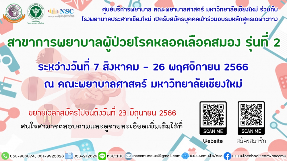 ระหว่างวันที่ 7 สิงหาคม - 26 พฤศจิกายน 2566 ณ คณะพยาบาลศาสตร์ มหาวิทยาลัยเชียงใหม่