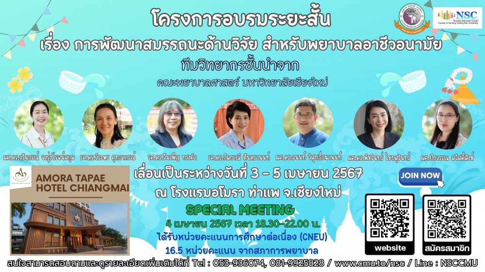 เลื่อนเป็นระหว่างวันที่ 3 - 5 เมษายน 2567 ณ โรงแรมอโมรา ท่าแพ จังหวัดเชียงใหม่
