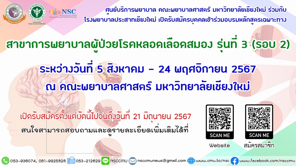- ทาง Line ID : NSCCMUลงทะเบียน/เบอร์ 081-9925828