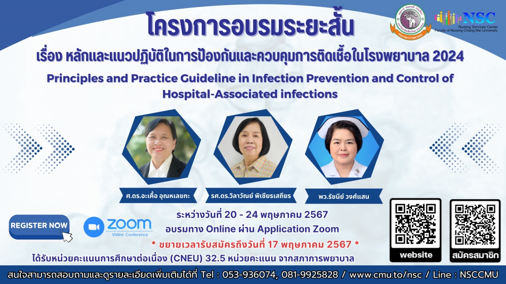 โครงการอบรมเรื่อง หลักและแนวปฏิบัติในการป้องกันและควบคุม การติดเชื้อในโรงพยาบาล มีจุดมุ่งหมายที่สำคัญเพื่อให้บุคลากรของโรงพยาบาลได้รับความรู้ที่ถูกต้องทันสมัยและเสริมสร้างความเข้าใจเกี่ยวกับหลัก การพื้นฐานและแนวปฏิบัติในการป้องกันและควบคุมการติดเชื้อในโรงพยาบาล รวมทั้งตระหนักถึงความสำคัญของการปฏิบัติตามแนวปฏิบัติตามหลักฐานเชิงประจักษ์ในการป้องกันการติดเชื้อจากการสอดใส่อุปกรณ์การ แพทย์ที่สำคัญที่เป็นปัญหาสำคัญของโรงพยาบาล ได้แก่ การป้องกันปอดอักเสบจากการใช้เครื่องช่วยหายใจ การป้องกันการติดเชื้อในกระแสโลหิตจากการสวนคาสายสวนหลอดเลือด การป้องกันการติดเชื้อที่ระบบทาง เดินปัสสาวะจากการคาสายสวนปัสสาวะ รวมทั้งการป้องกันการติดเชื้อดื้อยา การป้องกันการแพร่กระจายโรคอุบัติใหม่ระบบทางเดินหายใจ การป้องกันการแพร่กระจายเชื้อวัณโรค เป็นต้น สามารถ นำความรู้ที่ได้รับจากการอบรมไปปฏิบัติเพื่อป้องกันการแพร่กระจายเชื้อและ การติดเชื้อในโรงพยาบาล เพื่อให้ผู้ป่วยและผู้มารับบริการในโรงพยาบาลมีความปลอดภัย บุคลากรปลอดภัย รวมทั้งลดการปนเปื้อนเชื้อในสิ่งแวดล้อม ของโรงพยาบาล เพื่อให้โรงพยาบาลเป็นสถานที่ปลอดภัยต่อการดูแลรักษาพยาบาลผู้ป่วย