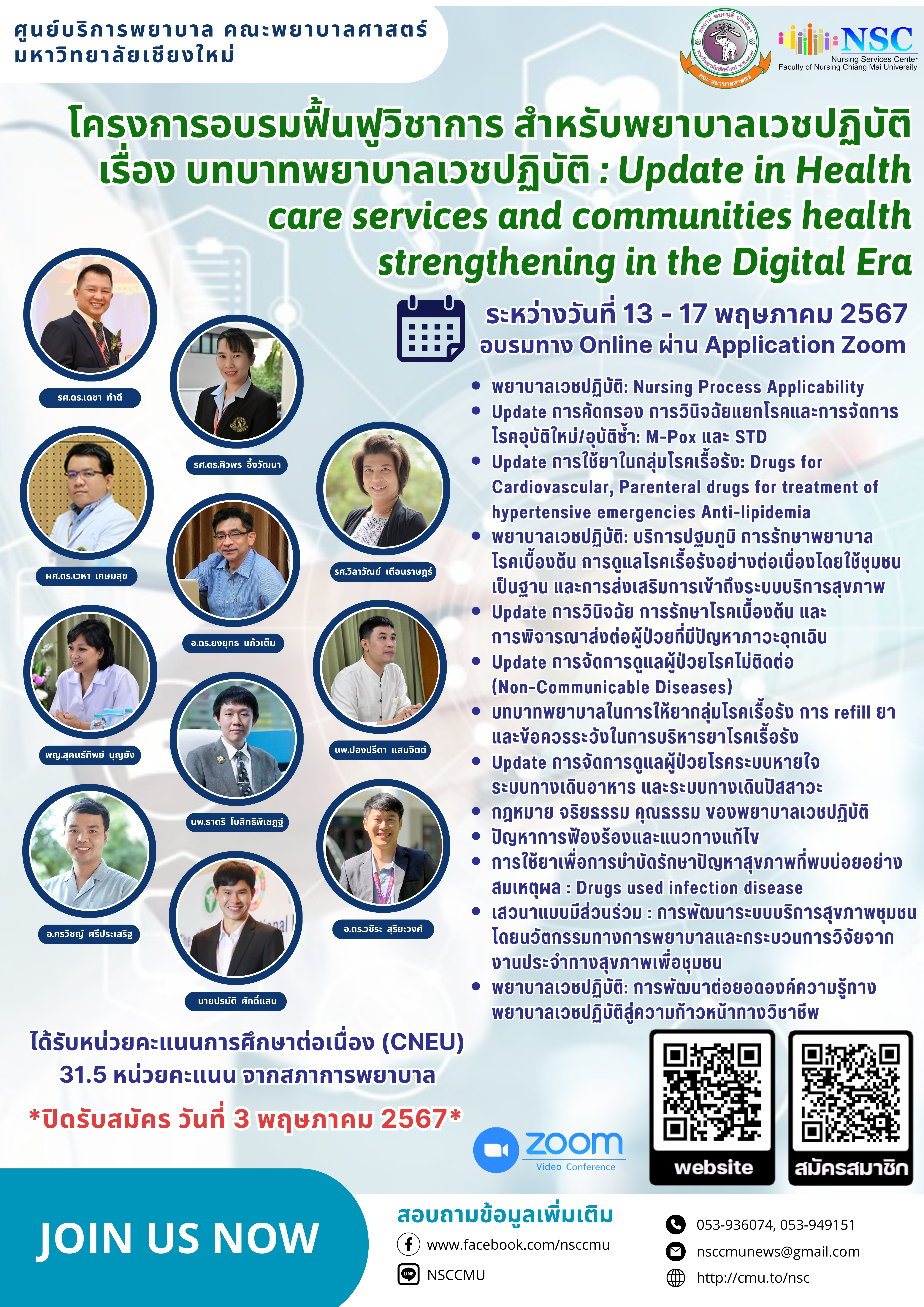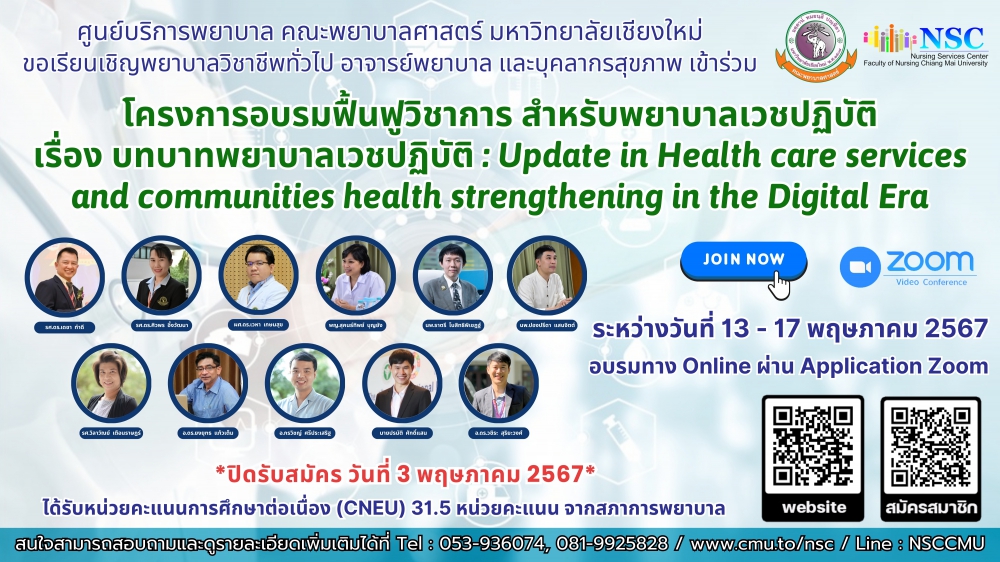 ระหว่างวันที่ 13 - 17 พฤษภาคม 2567 อบรมทาง Online ผ่าน Application Zoom **ได้รับ 31.5 หน่วยคะแนน CNEU**