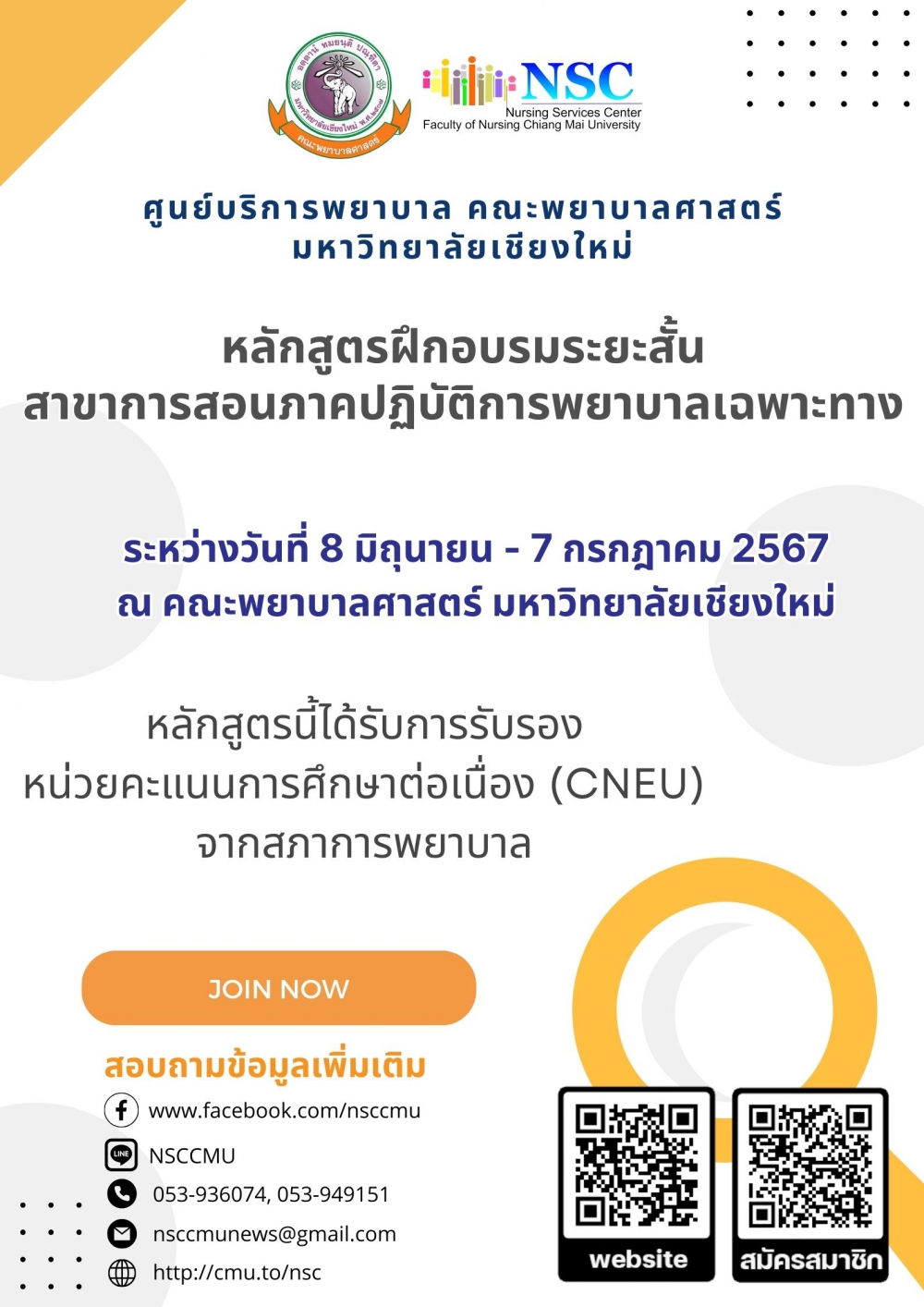 สอบถามรายละเอียดเพิ่มเติม โทรศัพท์ : 053-936074, 053-949151, 081-9925828 โทรสาร : 053-212629 Email : nsccmunews@gmail.com Facebook : www.facebook.com/nsccmu