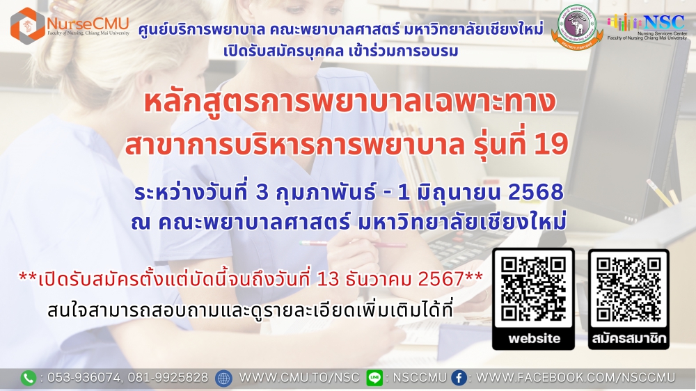 ระหว่างวันที่ 3 กุมภาพันธ์ - 1 มิถุนายน 2568 ณ คณะพยาบาลศาสตร์ มหาวิทยาลัยเชียงใหม่