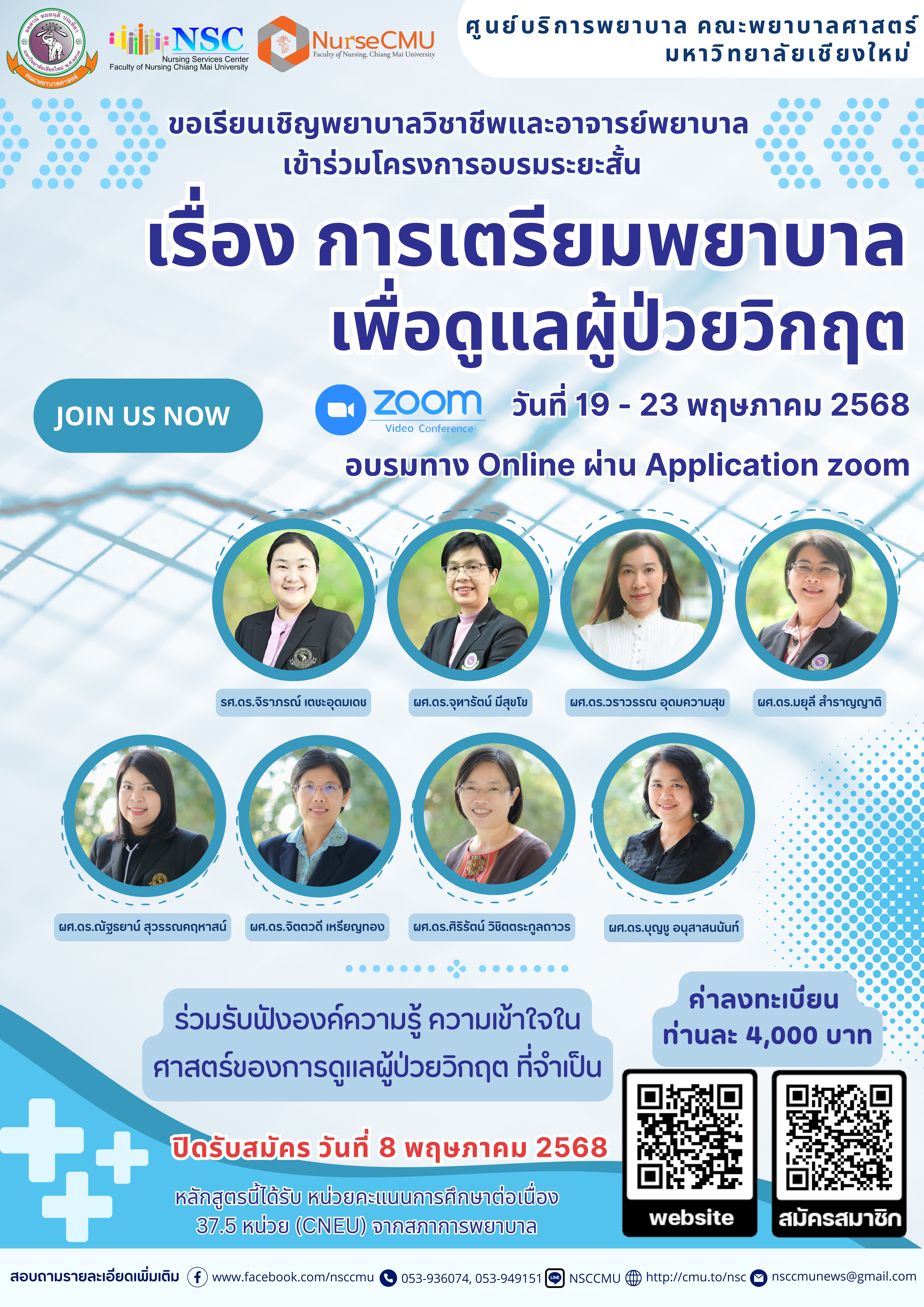 ระหว่างวันที่ 19 - 23 พฤษภาคม 2568 อบรมทาง Online ผ่าน Application Zoom ** ได้รับ 37.5 หน่วยคะแนน CNEU **